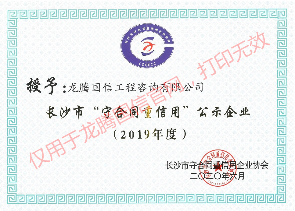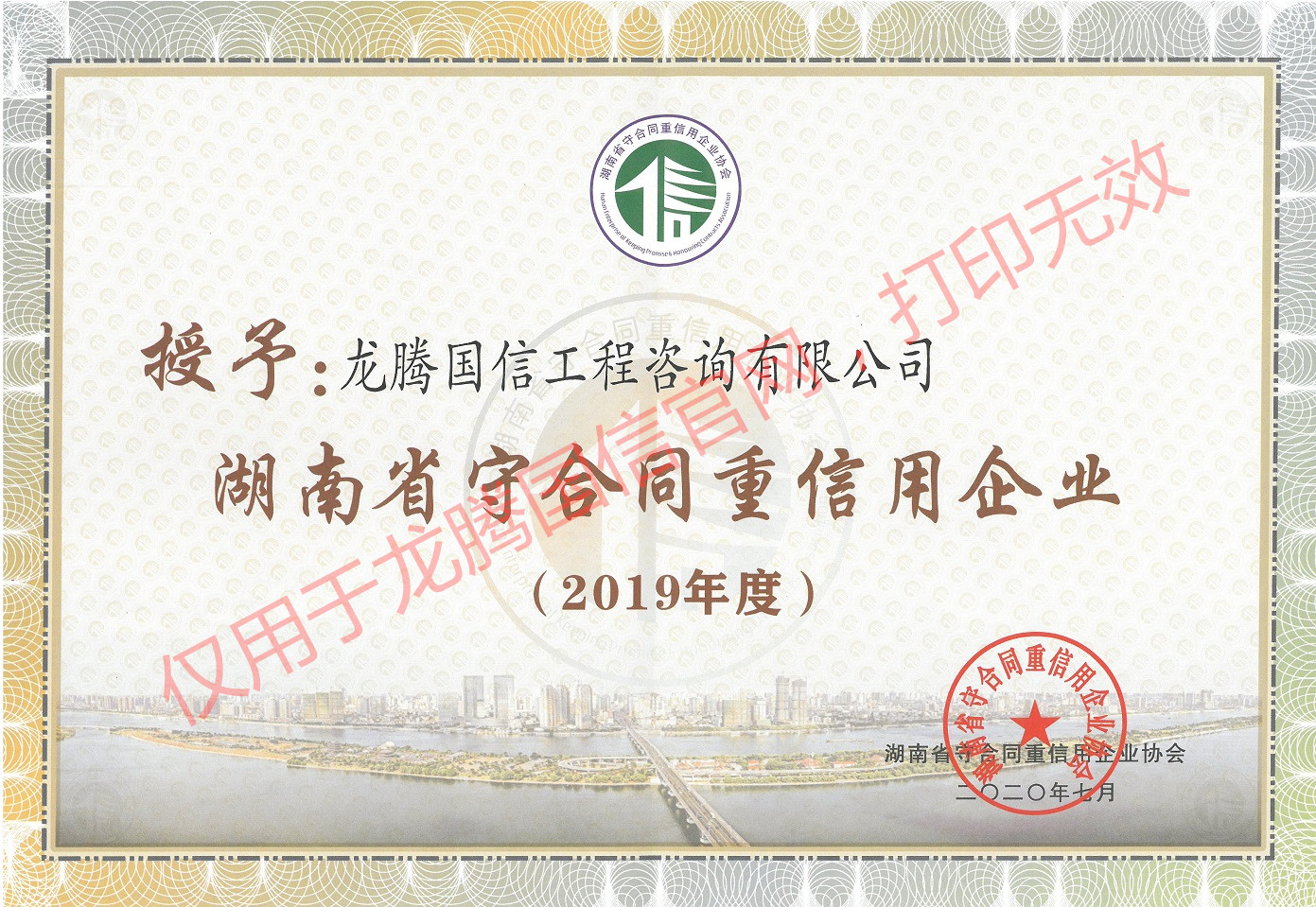 恭賀我公司榮獲湖南省和長沙市2019年度守合同重信用單位榮譽