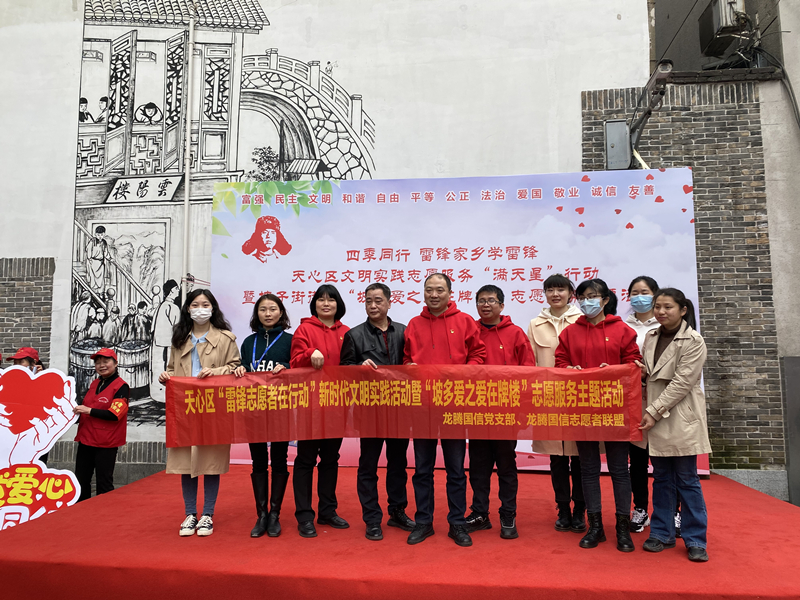 龍騰國信黨支部、龍騰國信志愿者聯(lián)盟今日在長沙市天心區(qū)坡子街街道西牌樓社區(qū)百年老巷胥樂園前坪,作為協(xié)辦單位,舉行了《天心區(qū)文明實(shí)踐志愿服務(wù)“滿天星”行動(dòng)暨坡子街街道“坡多愛之愛在牌樓”志愿服務(wù)主題活動(dòng)》。