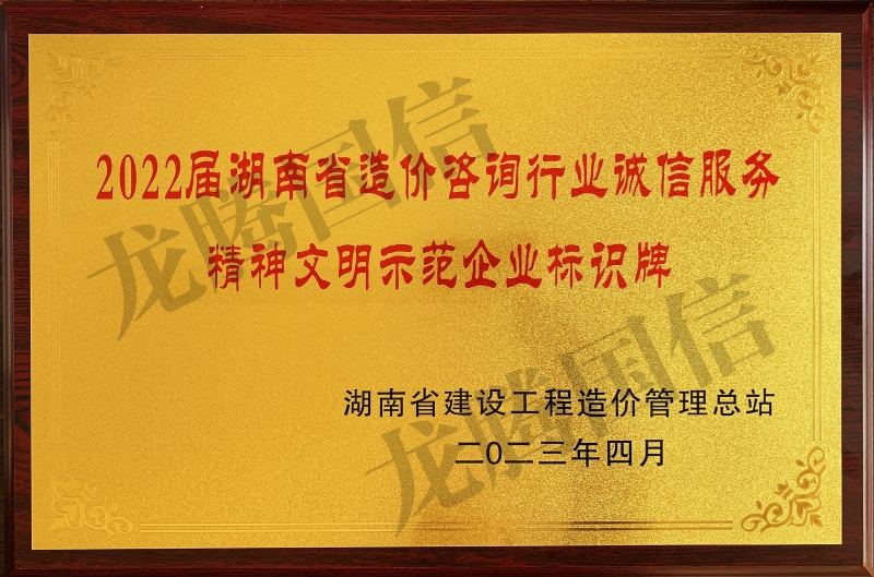 再獲授牌!龍騰國信獲湖南省造價(jià)咨詢行業(yè)誠信服務(wù)精神文明示范企業(yè)