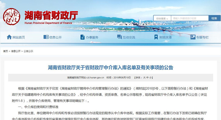 熱烈祝賀我司成功入圍“湖南省財(cái)政廳中介機(jī)構(gòu)庫(kù)”