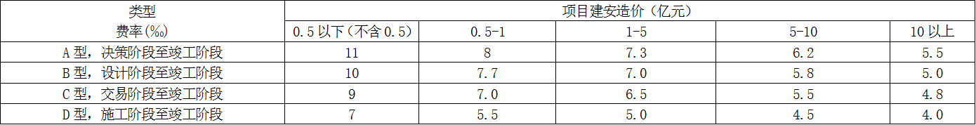 全過程造價咨詢服務(wù)收費參考價格表(不含駐場人員收費價格)
