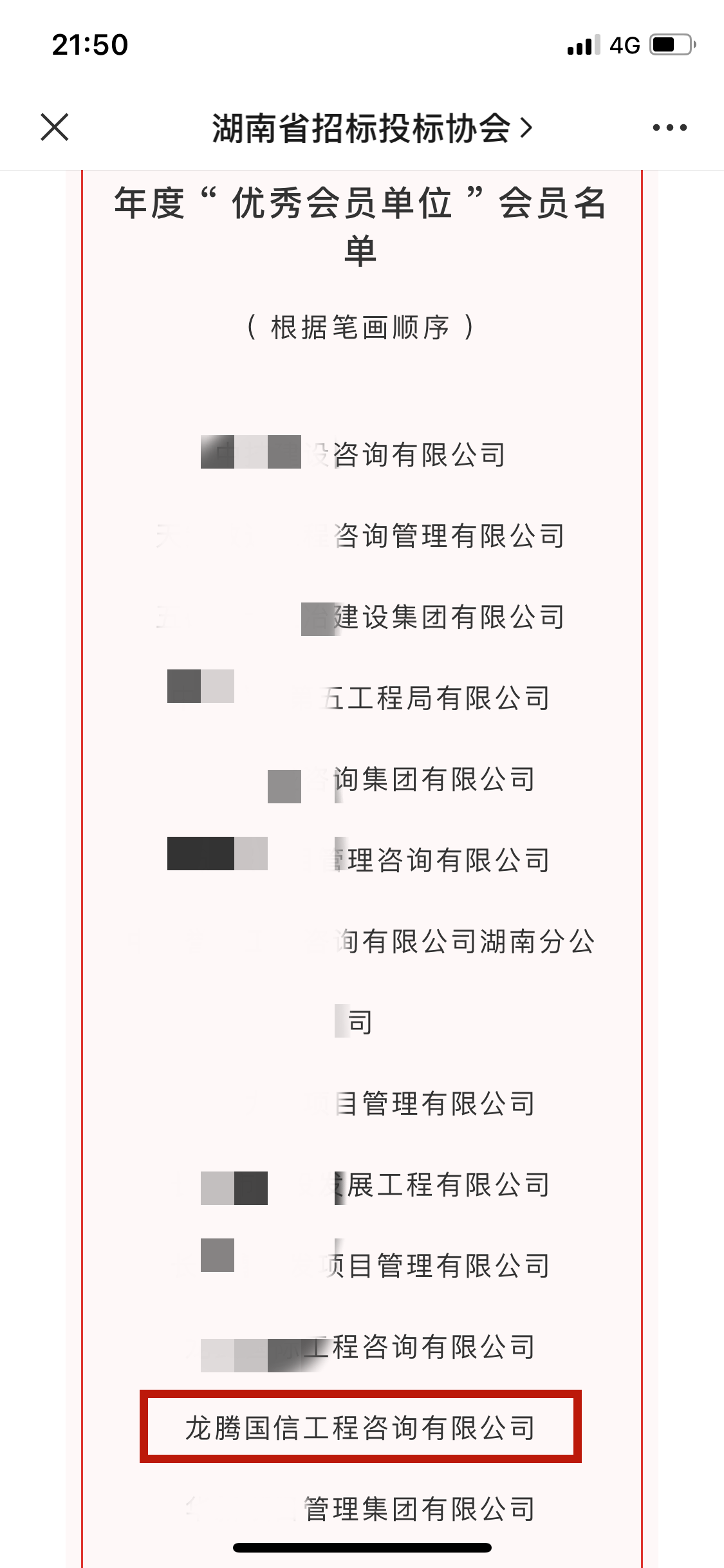 近日,在湖南省招標(biāo)投標(biāo)協(xié)會(huì)組織的表彰通告中,龍騰國信工程咨詢有限公司榮獲“2020年度優(yōu)秀會(huì)員單位”。同時(shí),公司李超先生獲協(xié)會(huì)“優(yōu)秀特約聯(lián)絡(luò)員”稱號(hào)。