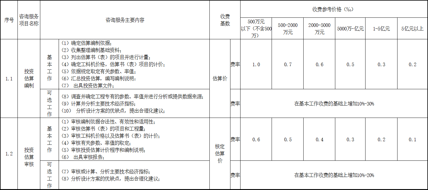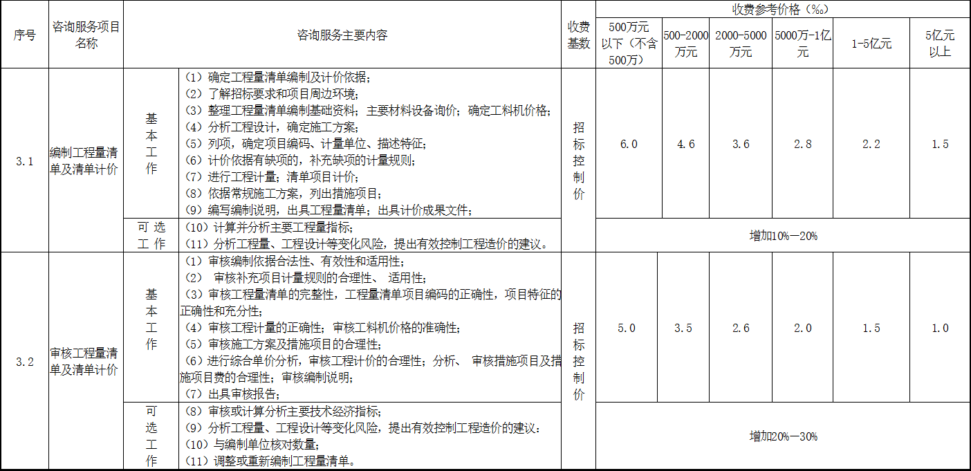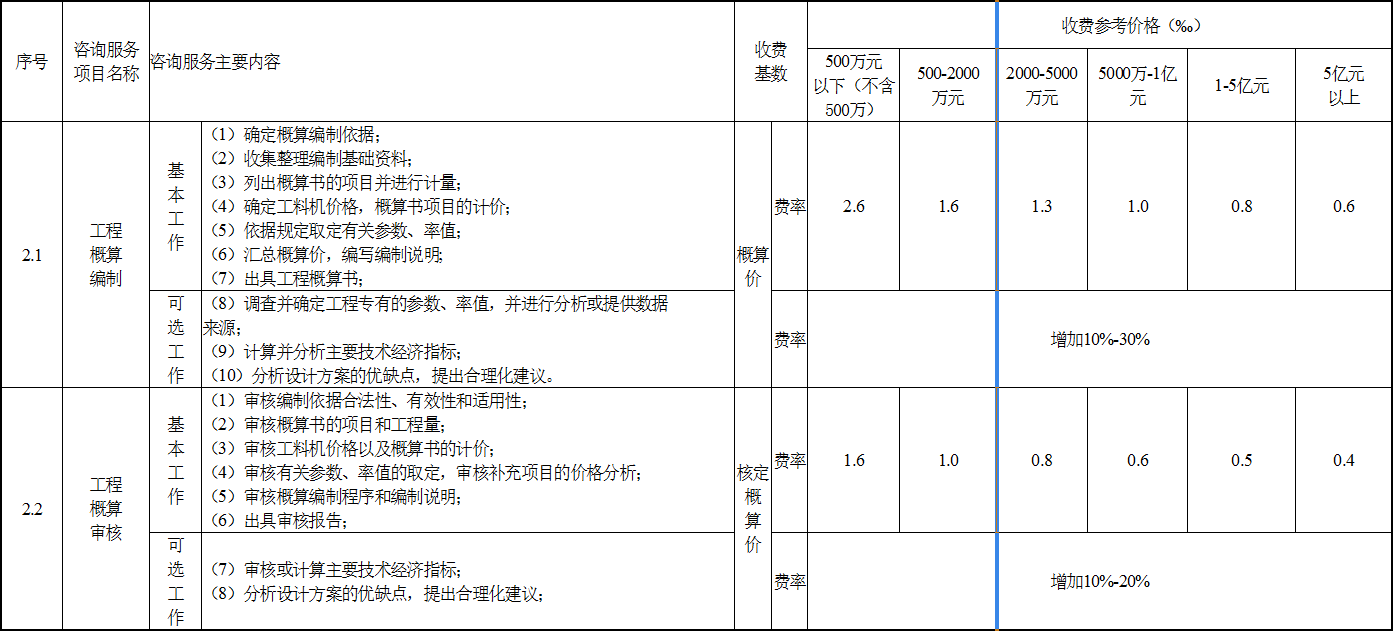 附件:造價咨詢行業(yè)咨詢服務(wù)收費參考價格表