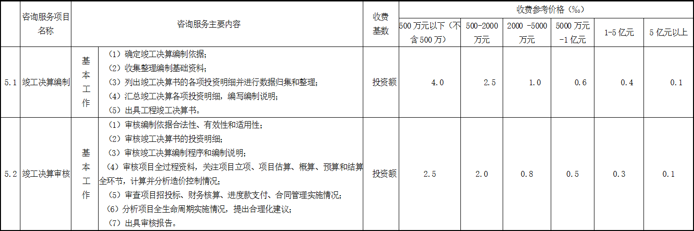 竣工決算編制或?qū)徍说淖稍兎?wù)收費參考價格表