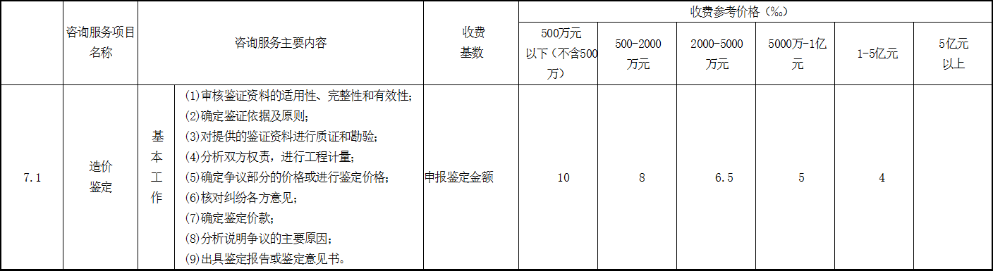 工程造價糾紛鑒定服務(wù)收費參考價格表