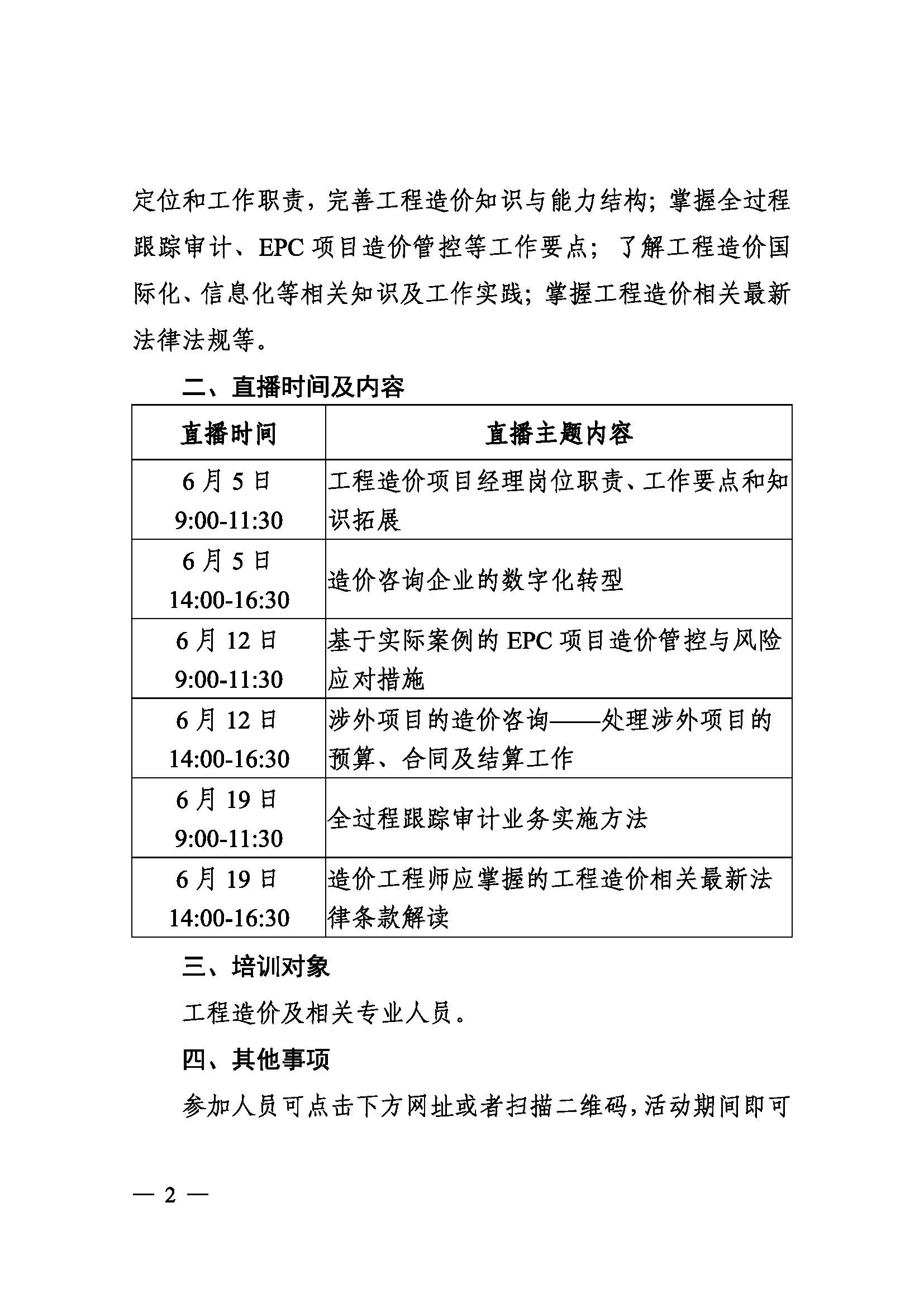 轉(zhuǎn)發(fā)中國建設(shè)工程造價(jià)管理協(xié)會關(guān)于舉辦工程造價(jià)咨詢企業(yè)項(xiàng)目經(jīng)理免費(fèi)網(wǎng)絡(luò)直播培訓(xùn)的通知